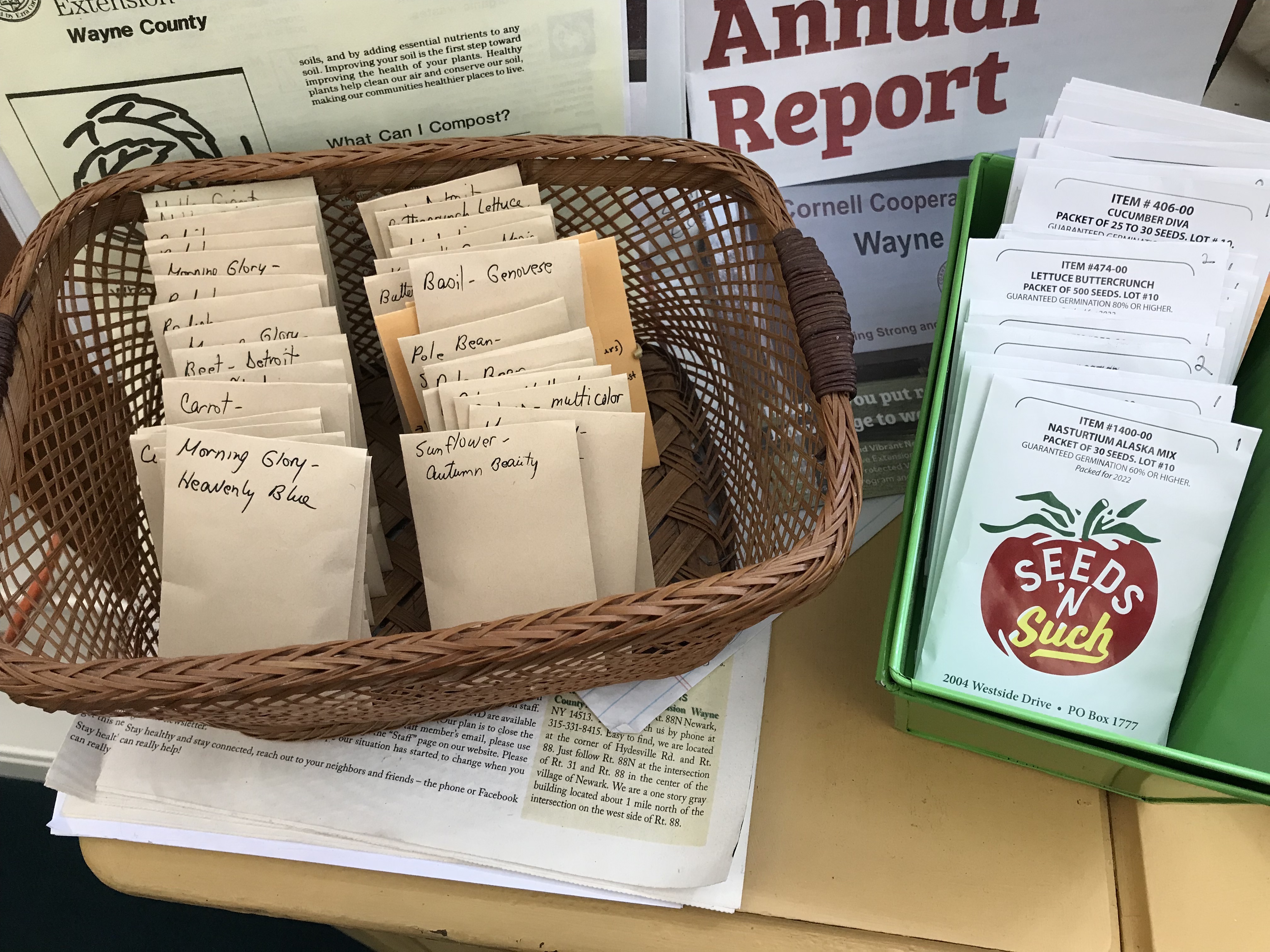 So where is the Macedon Seed Library? Not surprisingly, it’s in the Macedon Library. You’ll find it in the back of the main reading room in a white and yellow hutch. There is other information there, as well, on gardening and caring for the earth. How does it work? It’s simple! If you need seeds, you are welcome to take up to five envelopes to get you started on your own garden. There’s no need to check anything out, and no charge for the seeds. In return, we ask you to help us replenish the Seed Library with your own seeds at the end of the season, if you have any left over.