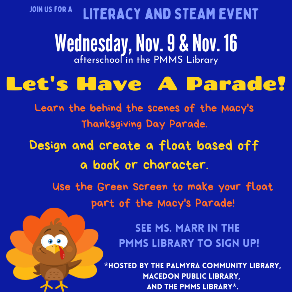 Calling All Middle Schoolers! Macedon Public LibraryNovember 8, 2022Uncategorized Post navigation PreviousNext Discover more from MACEDON PUBLIC LIBRARY Subscribe to get the latest posts sent to your email. Type your email… Subscribe Share this: Click to share on X (Opens in new window) X Click to share on Facebook (Opens in new window) Facebook Like Loading... Related