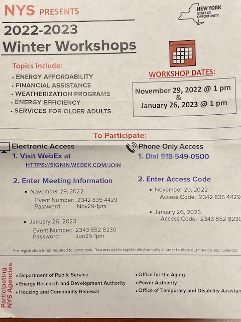 Attend one of these workshops to find out ways to combat the high cost of survival in the winter. These workshops are FREE. Sign up for an online meeting or, if you would rather, listen to the meeting using your telephone.