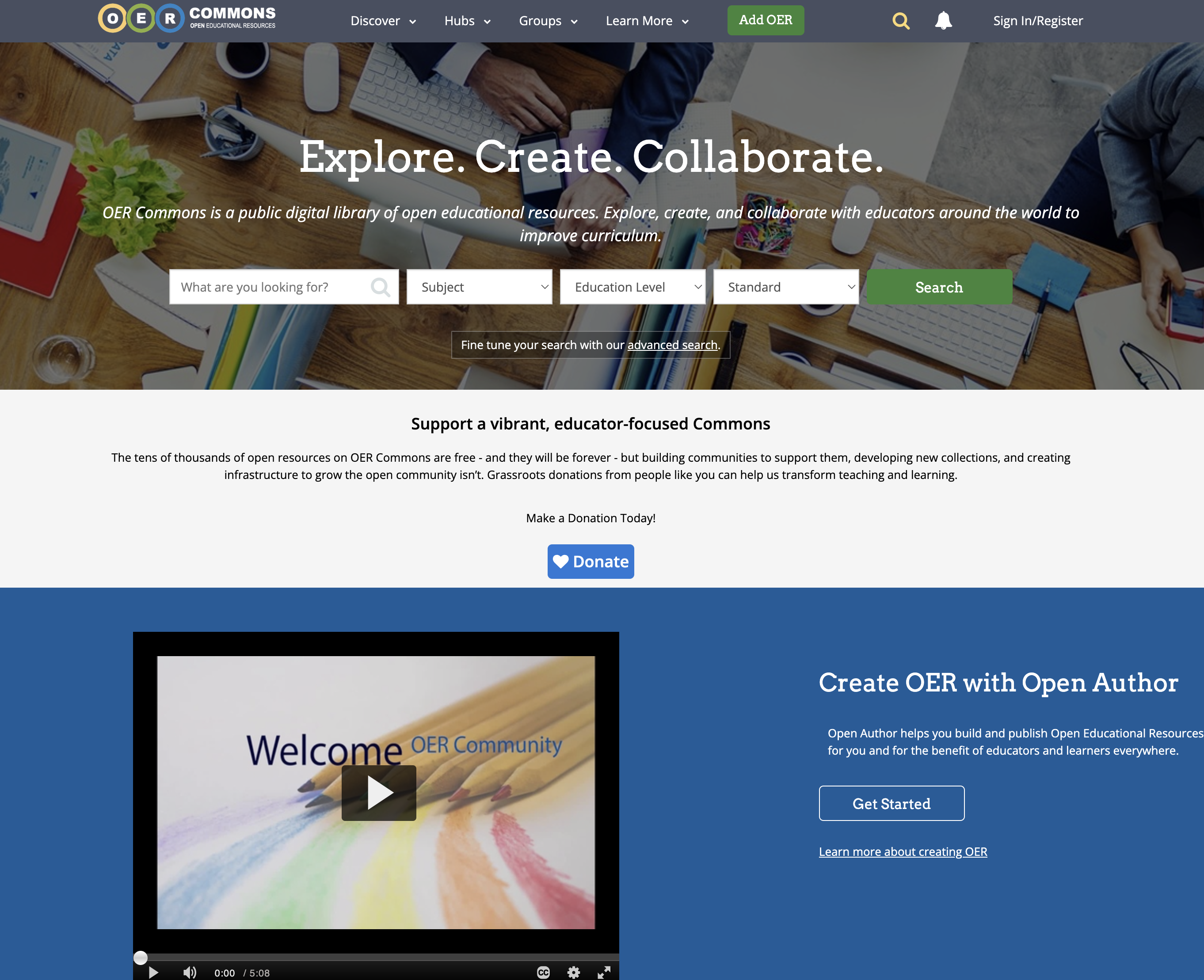 OER Commons is a public digital library of open educational resources. You can explore, create, and collaborate with educators around the world to improve curriculum. At OER Commons, you’ll find videos and lessons on a broad range of subjects: learn to speak Spanish or study law; brush up on your calculus skills or explore a career in the culinary arts. There are literally thousands of options available for you.